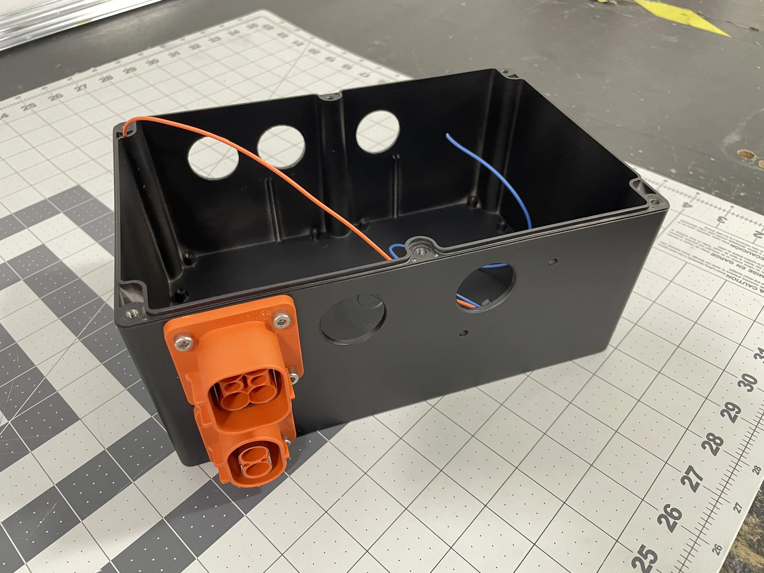 We started building the contactor box this week. Appropriately named since it houses the main contactor, plus a smaller contactor , a relay, and fuses. These help protect and manage the high voltage that enters the system from the batteries. Once installed it will be inconspicuously located but serviceable if necessary. Similar to the battery boxes, we’re building a few simultaneously.