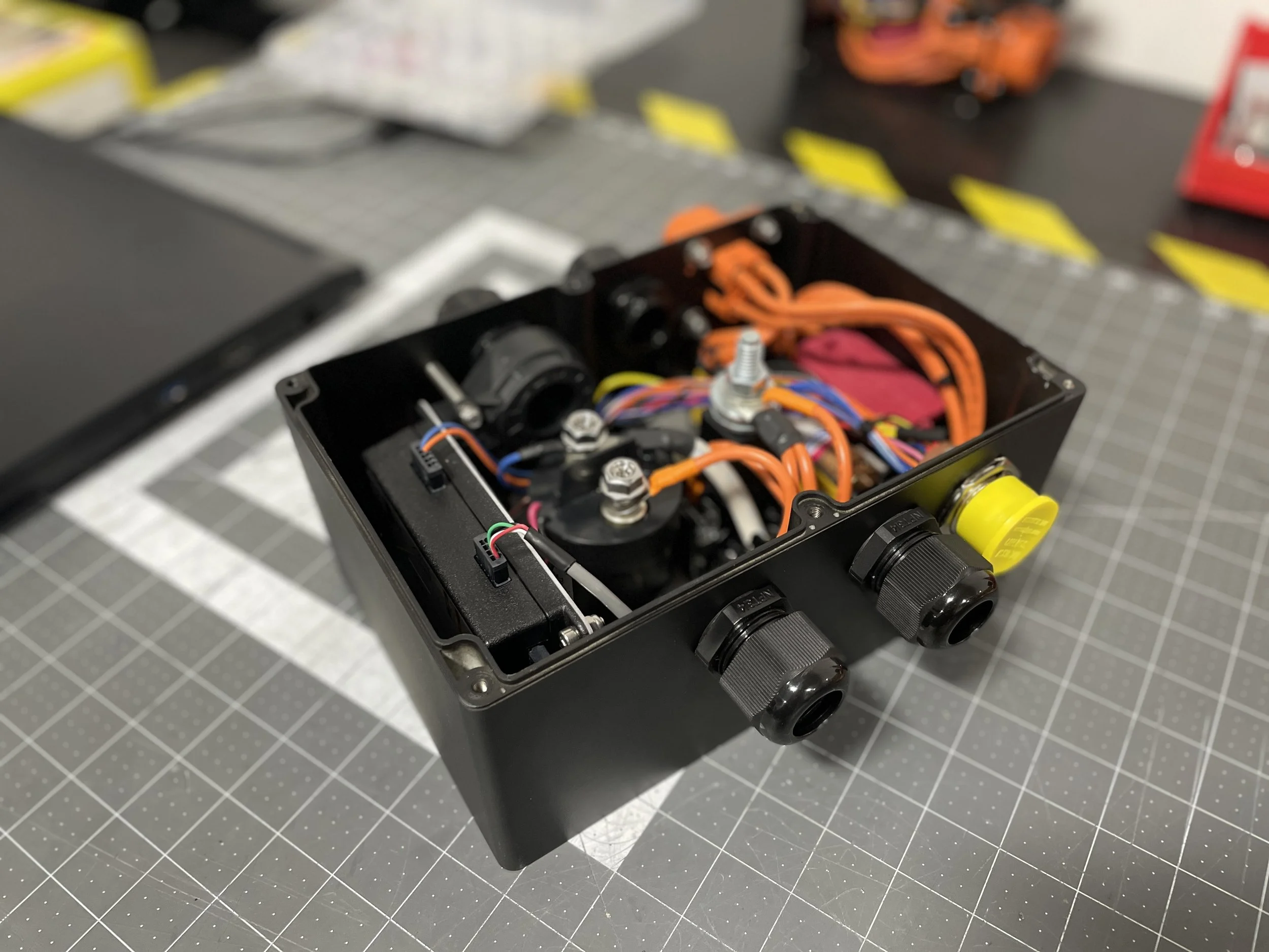 Contactor box is almost complete. We’re finalizing the last of the smaller gauge HV wiring and need to install the comm jack that allows us to program the master control unit for the battery management system.